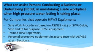 Zealand Standard ASNZS 42331 High Pressure Water Hydro. Most Dependable Hydro Jetting Machines because it is Manufactured in World-Class Infrastructure. All electrical equipment required to support the -.